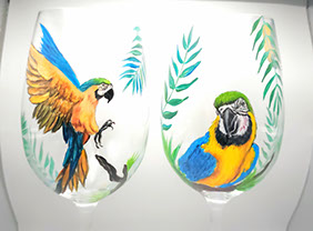 All wine glasses are hand-painted, each piece is unique and one of a kind.